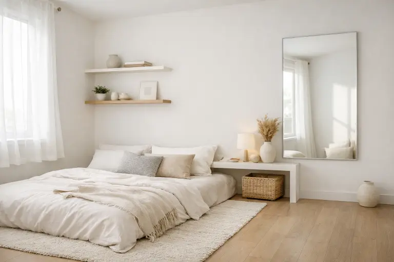 Light colors like white, cream, or soft grey reflect light, making your room feel open and airy. Dark colors absorb light, which can make the walls feel closer and the space smaller. That’s why most well-designed small rooms use lighter shades as a base.